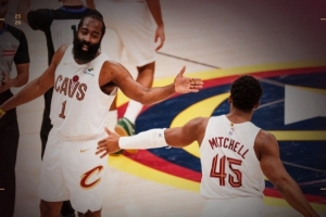 本场比赛哈登砍下22分10板7助3帽,命中扳平三分;米切尔砍下32分10助2断2帽,两罚绝杀比赛。