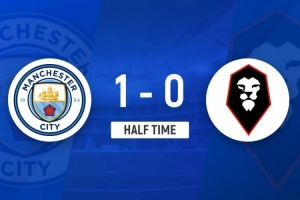 半场-曼城暂1-0索尔福德城 努里造乌龙马尔穆什进球被吹