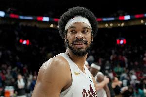 本场比赛,骑士中锋贾勒特·阿伦进攻端各种吃饼很轻松,美中不足是罚球,球队优势太大三节打卡下班。