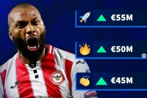 伊戈尔·蒂亚戈本赛季在英超已经打进18粒进球,射手榜上仅次于哈兰德,目前球员身价3500万欧。德转给出他下一次更新后的身价选项至少为4000万欧,最高可达5500万欧。